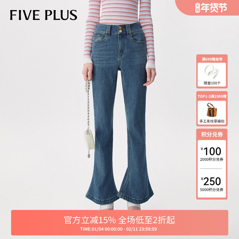 【FIVE PLUS 奥莱】牛仔裤女复古微喇叭高腰显瘦设计感裤子女秋装