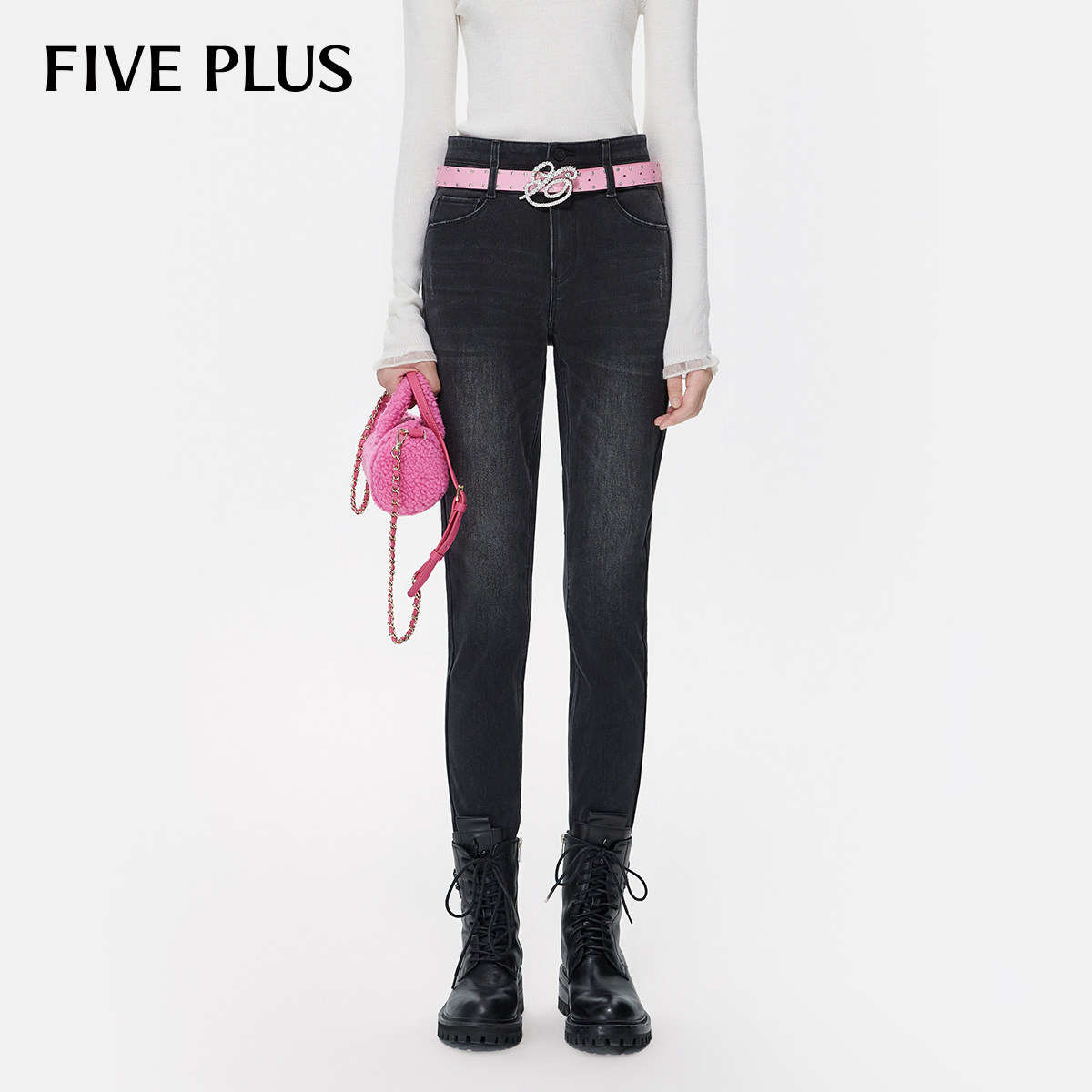 FIVE PLUS复古显瘦牛仔裤女修身小脚铅笔裤直筒修身显瘦弹力S裤