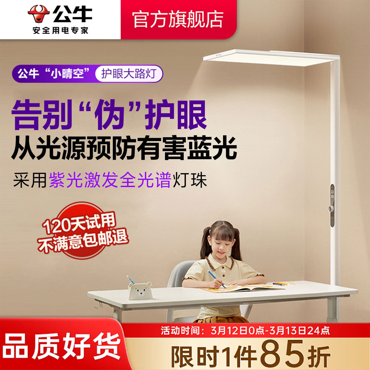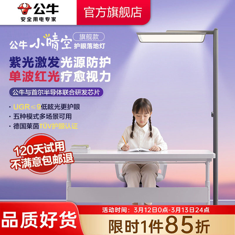 公牛小晴空大路灯学习专用立式台灯儿童写字学生全光谱护眼阅读灯