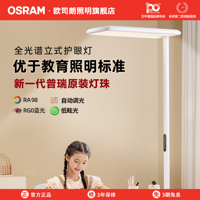 欧司朗全光谱大路灯落地护眼灯儿童学生书桌阅读学习专用立式台灯