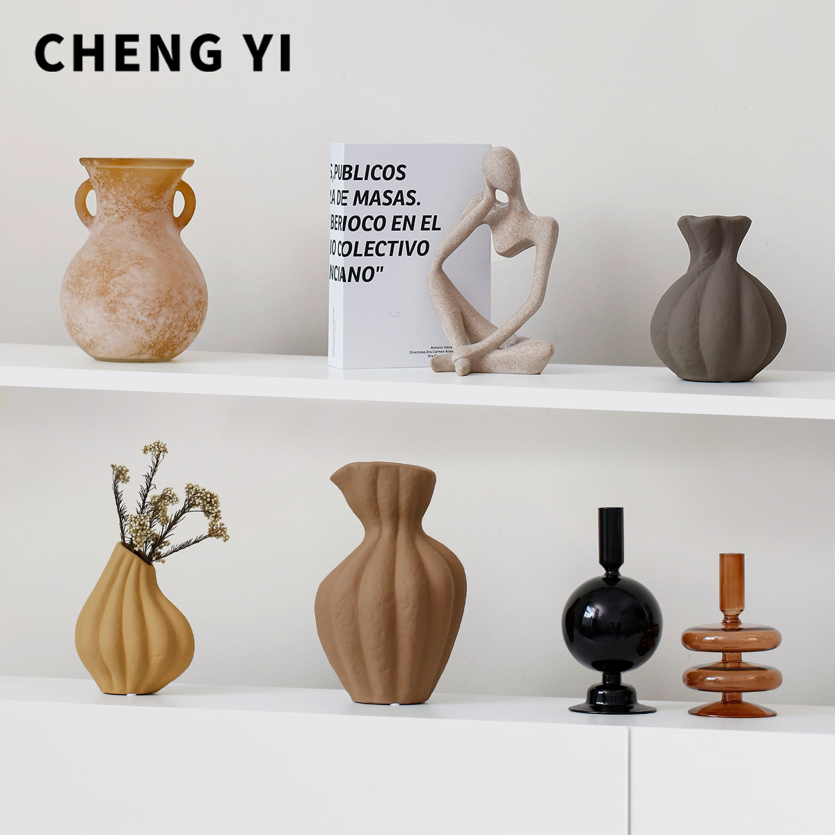 诚艺侘寂中古风陶瓷花瓶艺术小众花器法式高级玄关客厅装饰品摆件