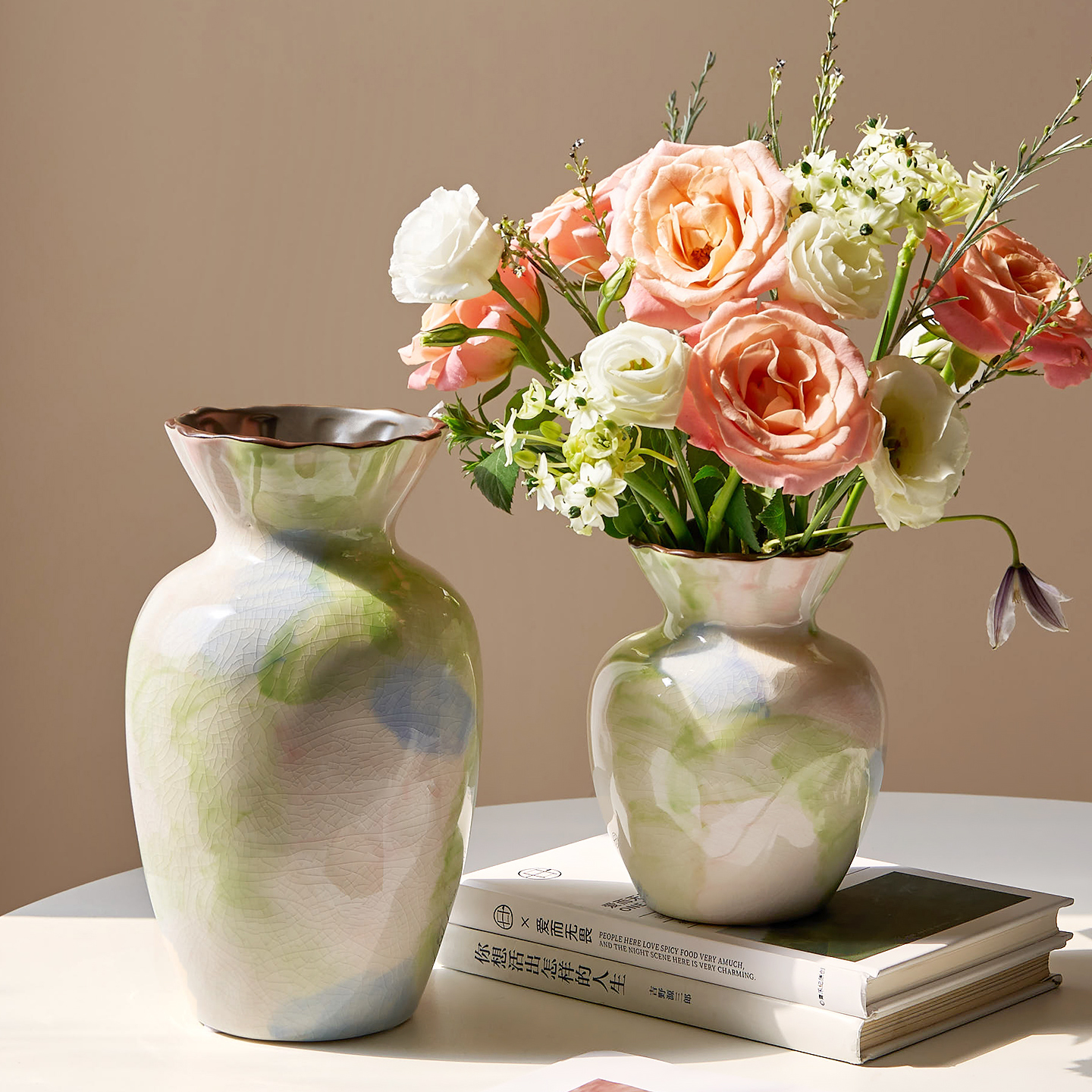 法式油画风色彩艺术陶瓷花瓶简约现代水培插花鲜花客厅装饰品摆件
