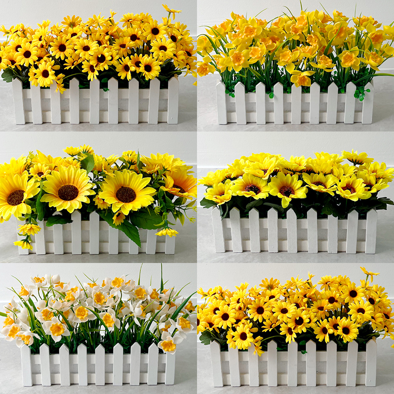 绢花塑料插花干花束向日葵木栅栏假花仿真花艺套装客厅装饰品摆件