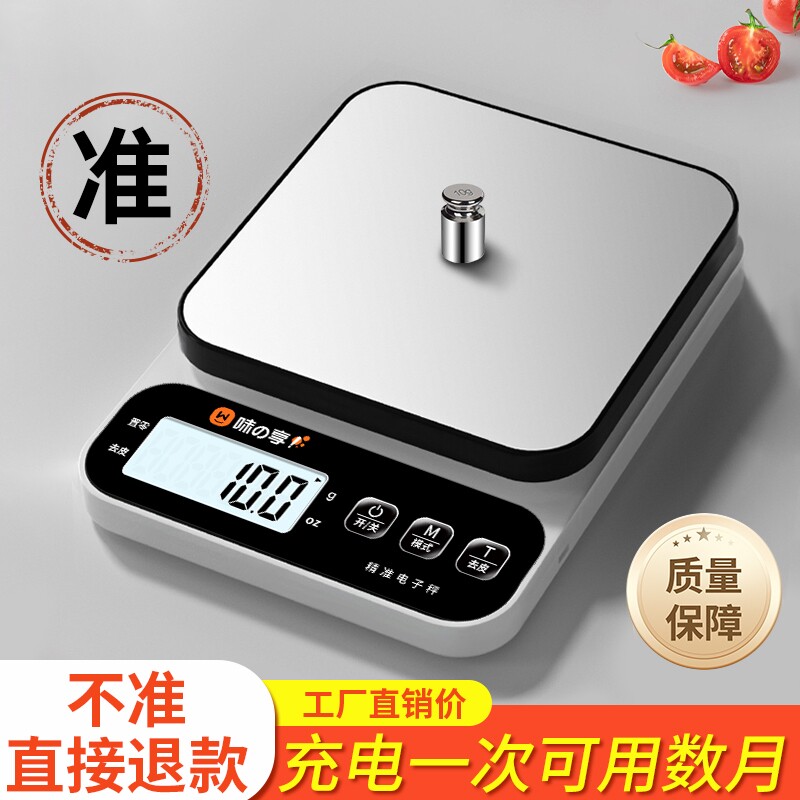 家用克数厨房秤电子秤高精度小型称重烘焙食物克称精准充电天平度