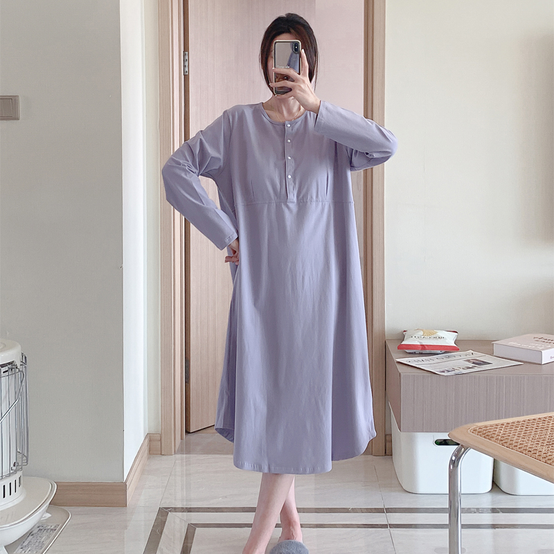 芬腾可安长款月子服睡衣女款春秋季带胸垫纯棉哺乳产后睡裙待产裙