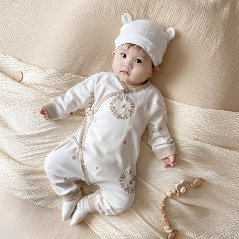 新生儿宝宝纯棉护肚和尚服婴儿超萌月子服无骨系带哈衣春秋0-3--6