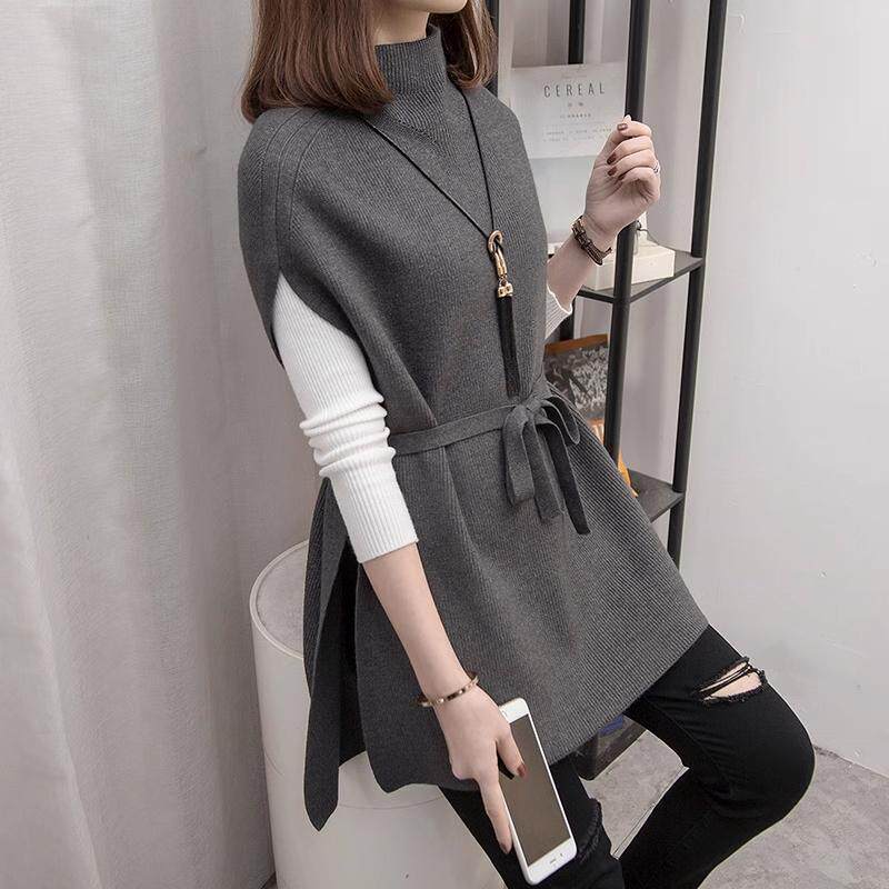 - 中长款毛衣女套头 下摆开叉