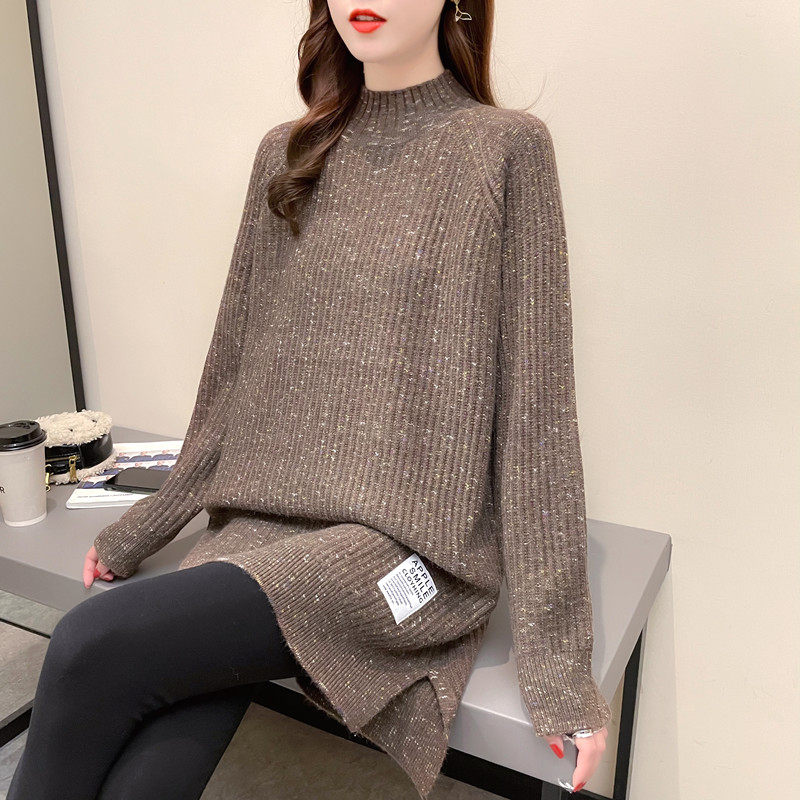 半高领中长款毛衣女秋冬内搭可外穿侧开叉针织衫宽松遮屁股打底衫