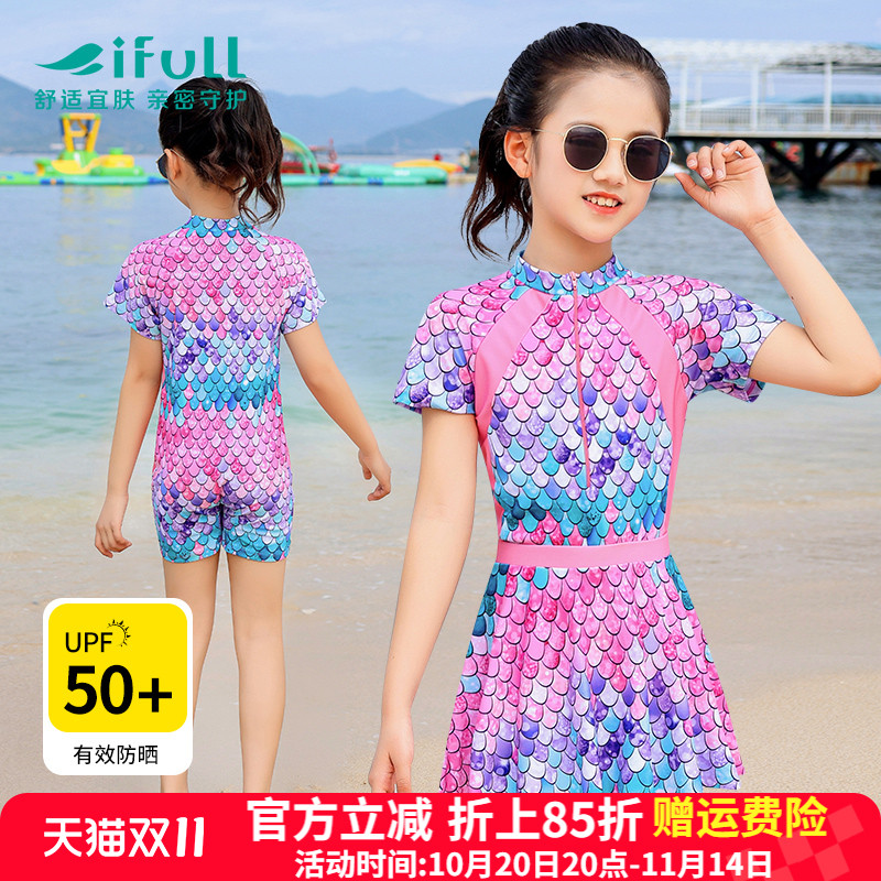 宜肤儿童泳衣女童女孩宝宝专业训练连体中大童美人鱼公主游泳衣装