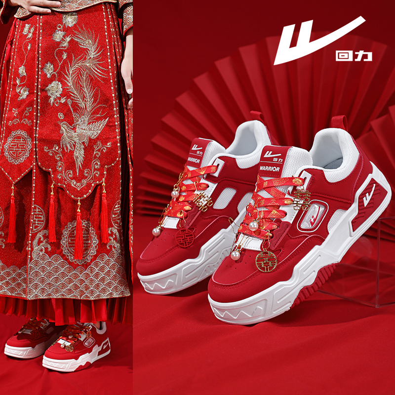 回力女鞋红色婚鞋2025新款新娘鞋平时可穿运动鞋厚底增高真皮板鞋