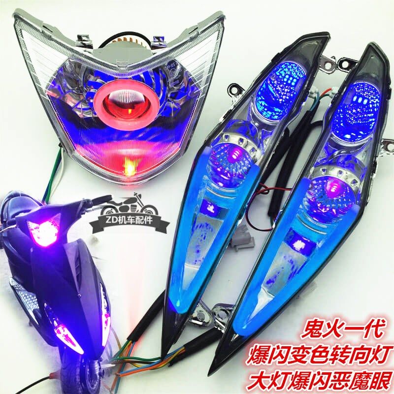 包邮踏板助力车摩托车配件改装GY6鬼火一代125个性车灯前大灯总成