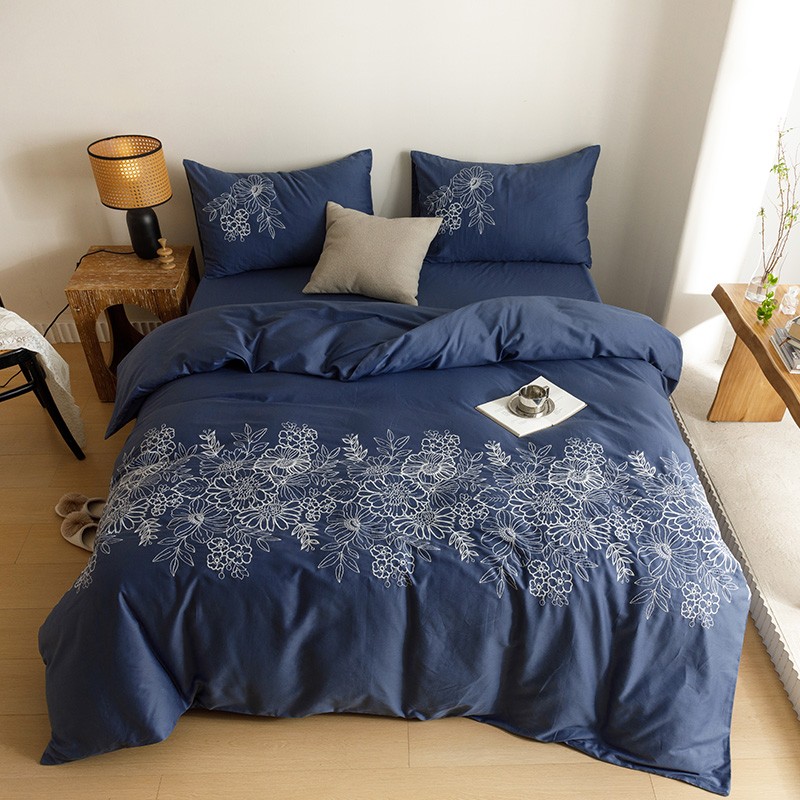 花卉刺绣60支纯棉被套四件套全棉床单长绒棉100被罩高端床上用品4