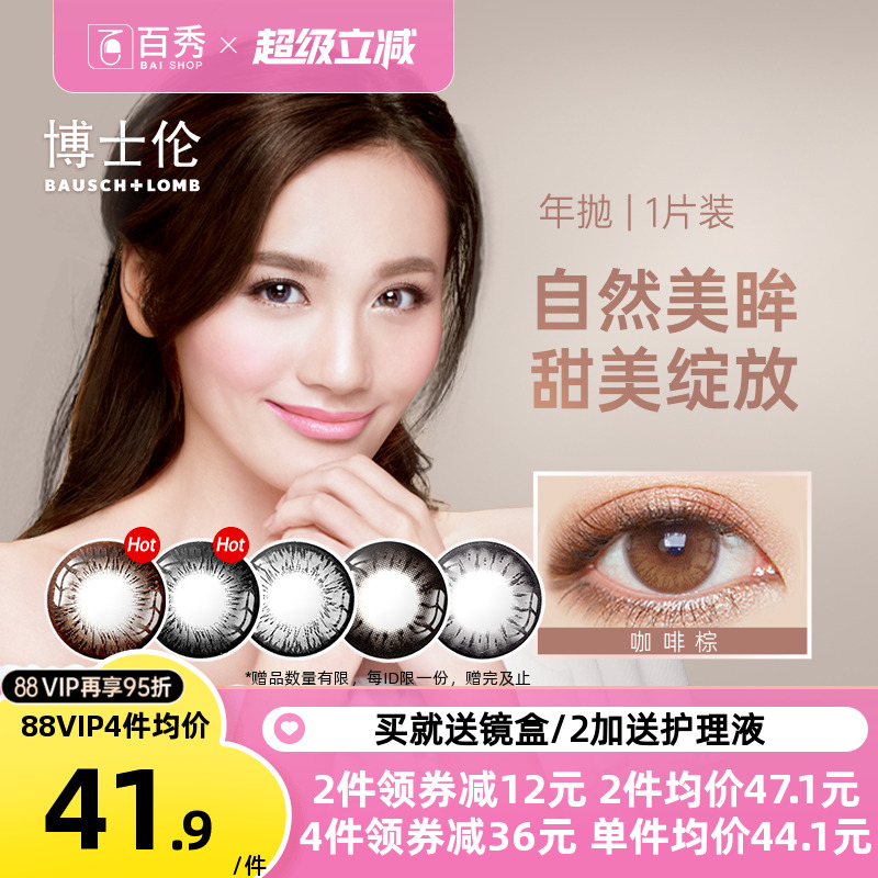 博士伦美瞳年抛盒装1片大直径自然彩色隐形近视眼镜男女官方正品