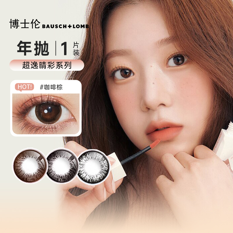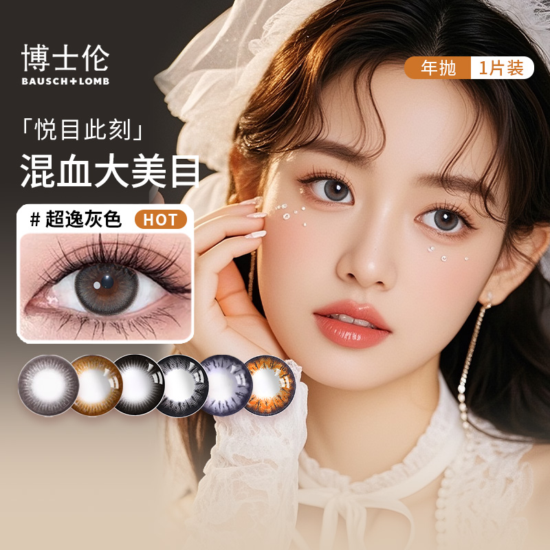 博士伦超逸睛彩年抛1片美瞳大直径自然混血款彩色隐形眼镜正品sl