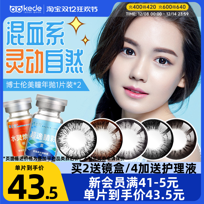 博士伦美瞳年抛2片大小直径半年抛混血近视隐形眼镜旗舰官网正品