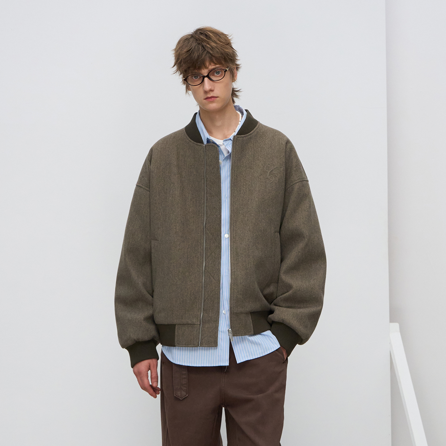 CLIMAX VISION复古老钱风棒球领廓形夹棉保暖毛呢夹克男冬季外套
