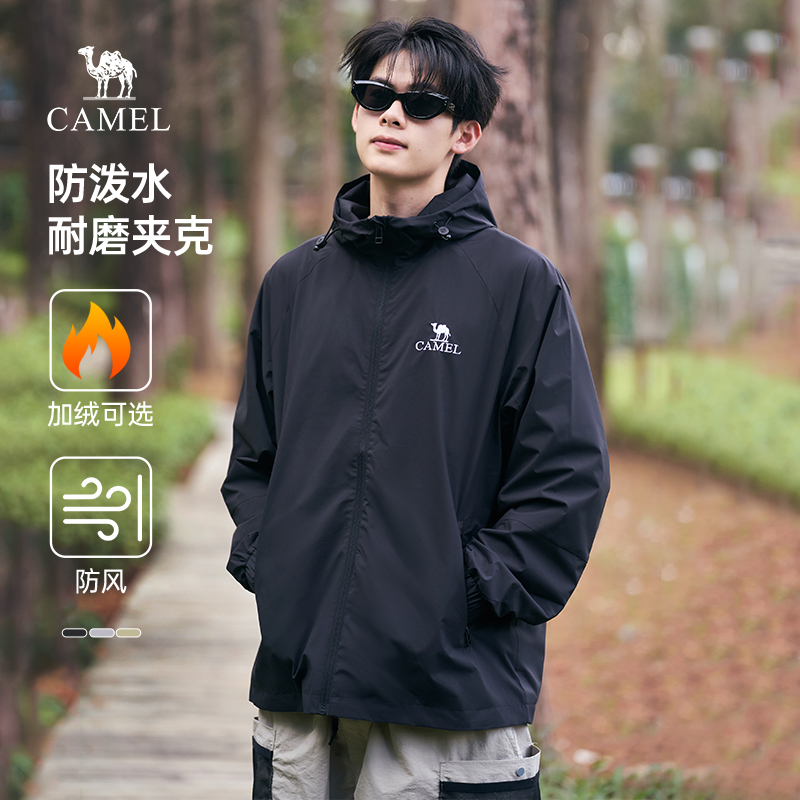 骆驼运动三防外套男女款秋冬季户外休闲防风防水加绒夹克登山服装