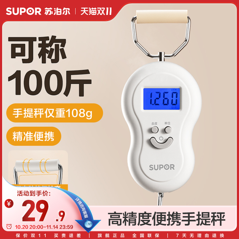 苏泊尔手提电子秤高精度家用50kg买菜称快递小型挂钩弹簧秤便捷式