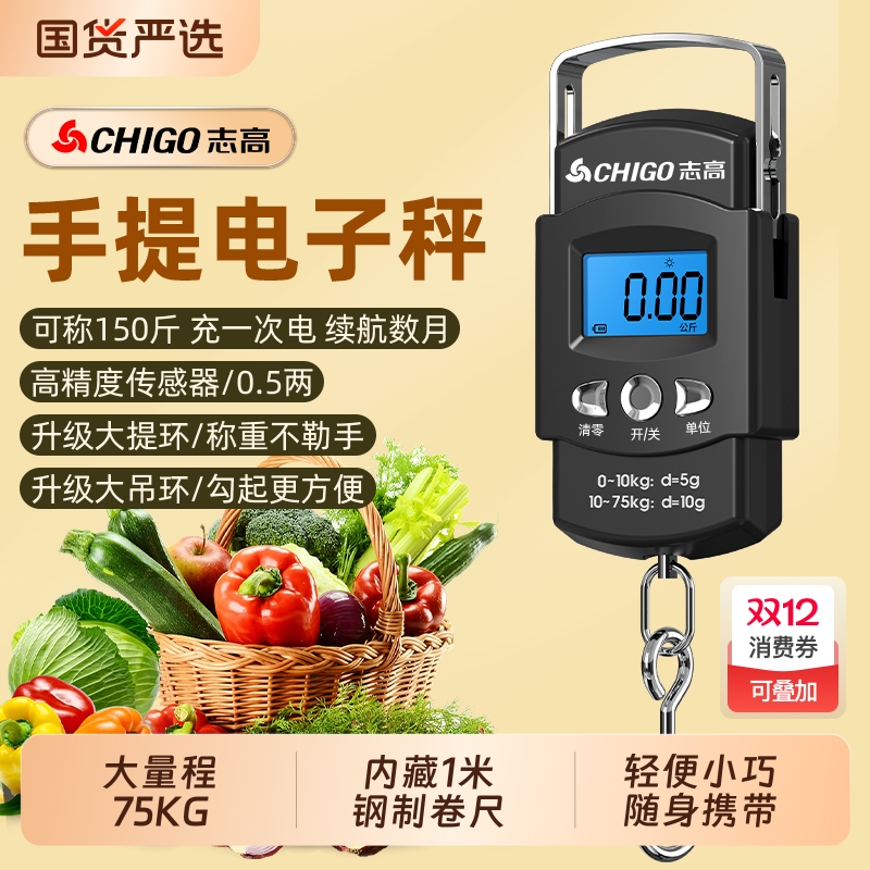 志高手提电子秤迷你高精度便携式家用快递钩秤75KG称鱼小型弹簧秤