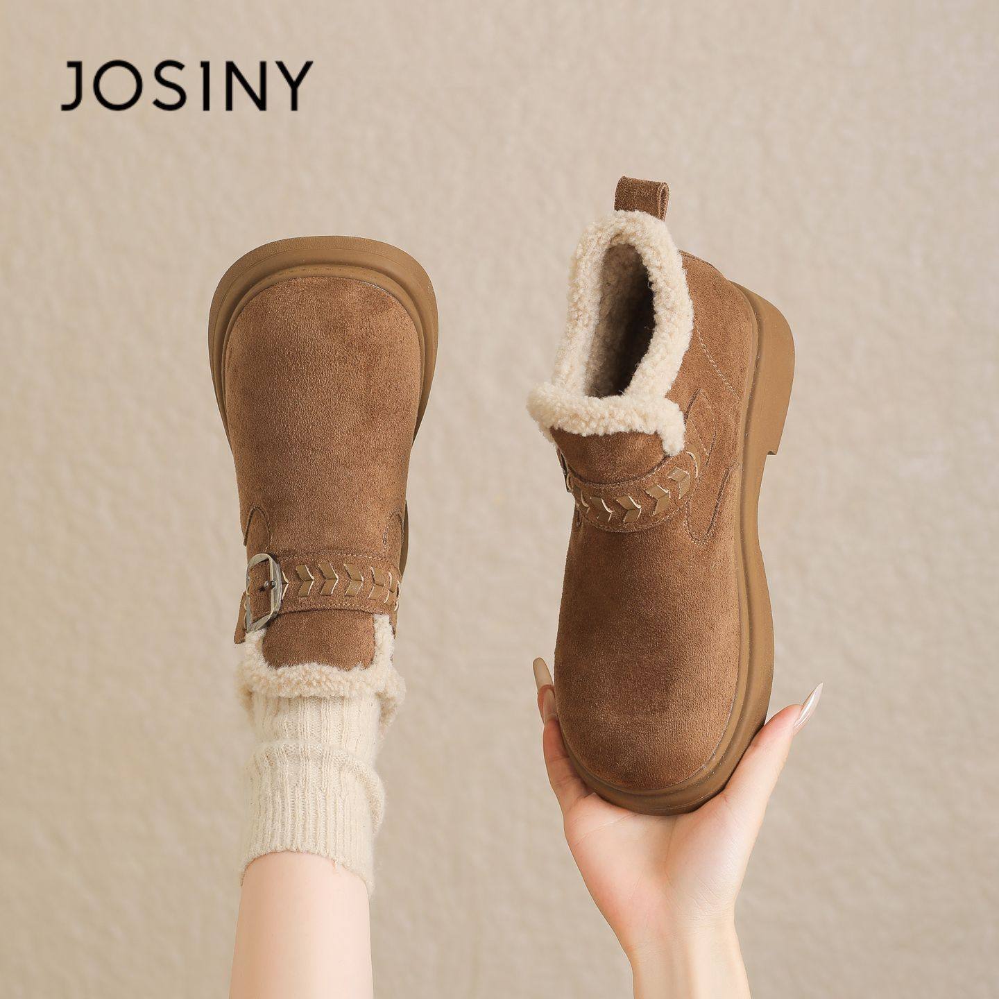 - 加绒平底靴