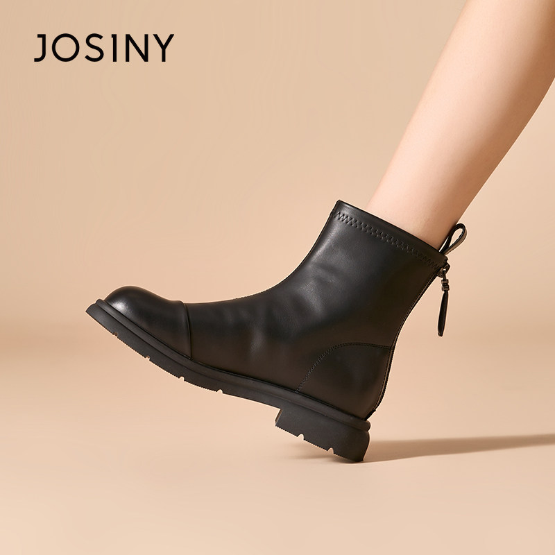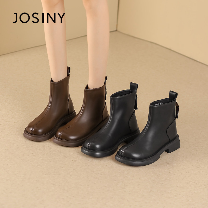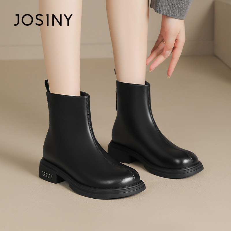 - 马丁靴女 短靴 粗跟 侧拉链