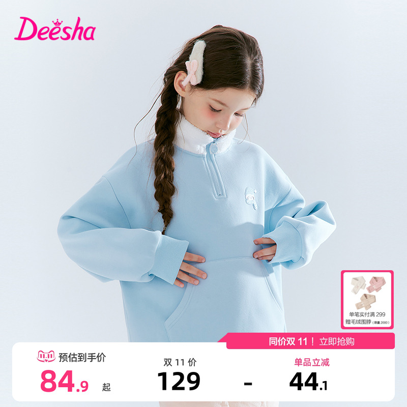笛莎官方旗舰童装女童加绒卫衣冬季新款大童女孩儿童时尚保暖上衣