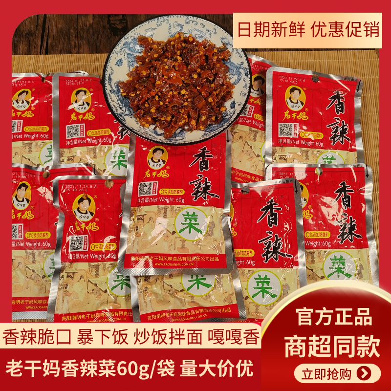 【官方旗舰店】老干妈香辣菜60g袋装下饭菜辣椒酱咸榨菜拌饭拌面