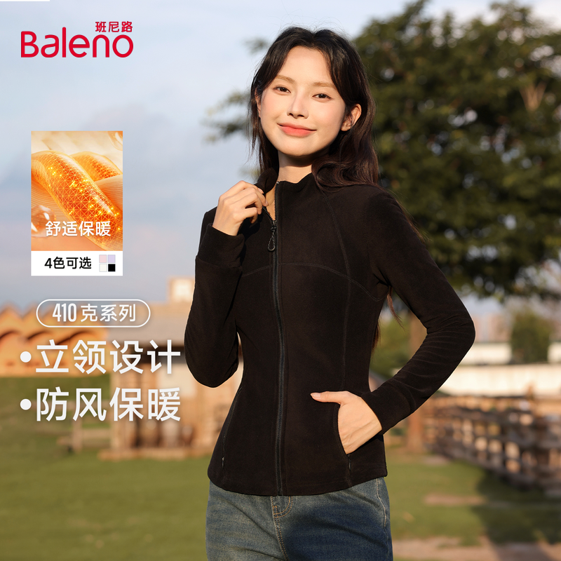 班尼路黑色修身外套女初秋新款小个子上衣女士短款立领开衫卫衣Q