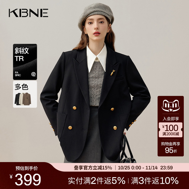 KBNE黑色长袖短外套2025秋冬新款气质西服修身复古西装夹克上衣女