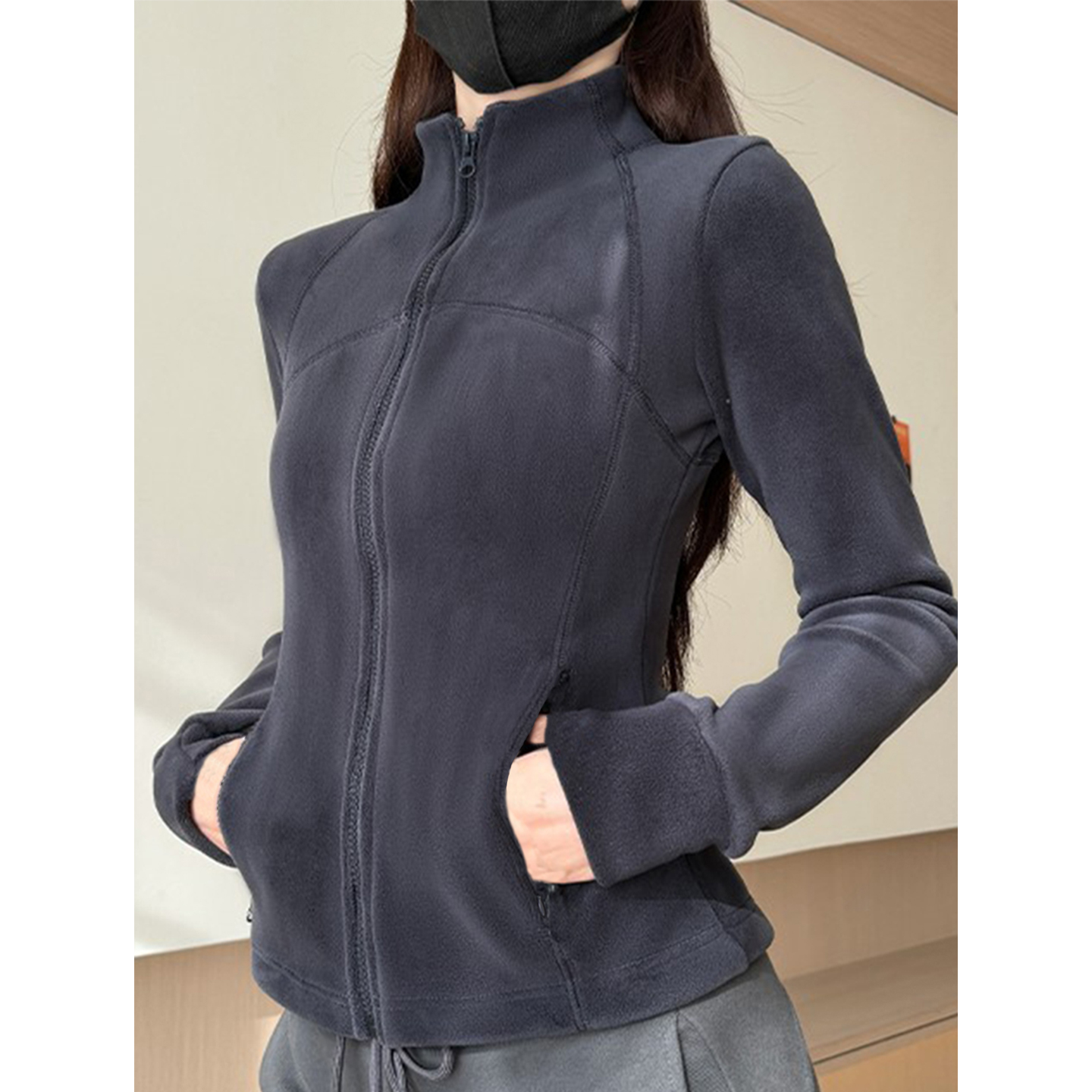 KYV真维斯修身摇粒绒外套女冬季2025新款黑色立领加绒冲锋衣内胆
