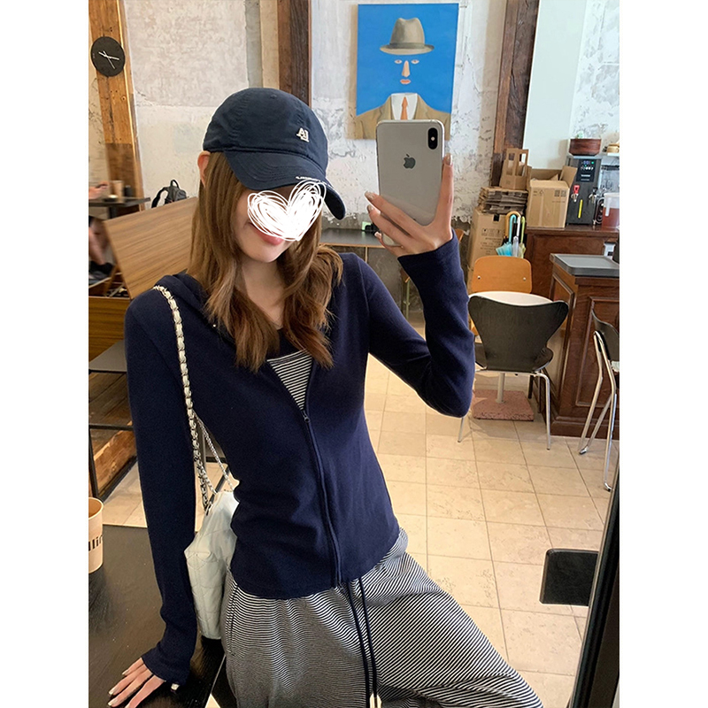 黑色修身外套女款早秋季2025新款连帽卫衣韩系穿搭收腰瑜伽服上衣