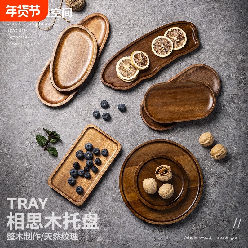 日式木质托盘长方形圆形椭圆木质托盘甜品摆件首饰收纳盘碟子拍照
