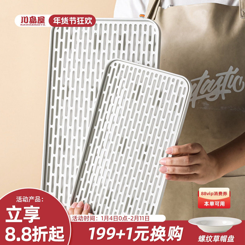 川岛屋塑料沥水托盘长方形家用放茶杯水杯水壶杯子汲水滤水接水盘