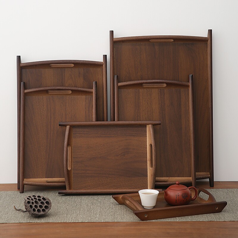 复古风胡桃木质托盘轻奢高档托盘商用茶盘点心水果收纳盘待客餐盘