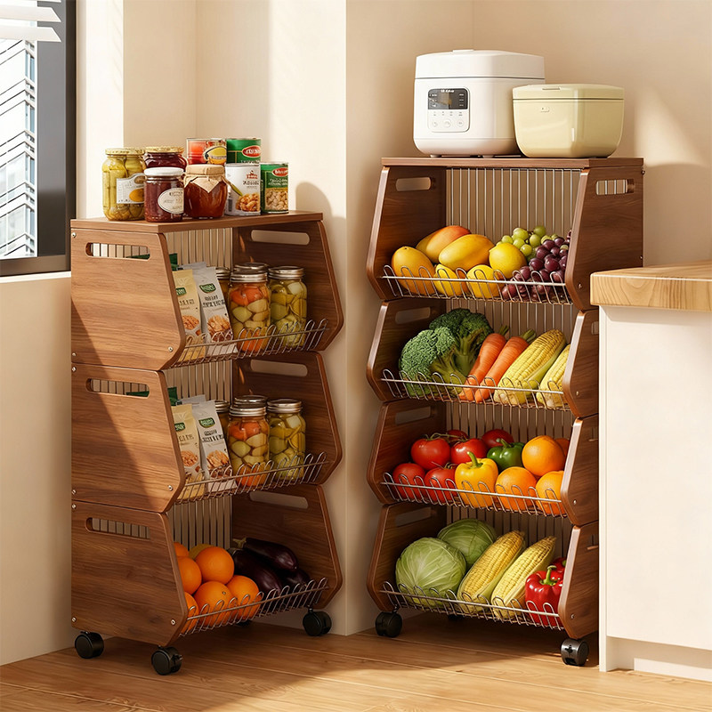 实木厨房置物架落地多层可移动水果蔬菜篮子零食家用收纳整理架子