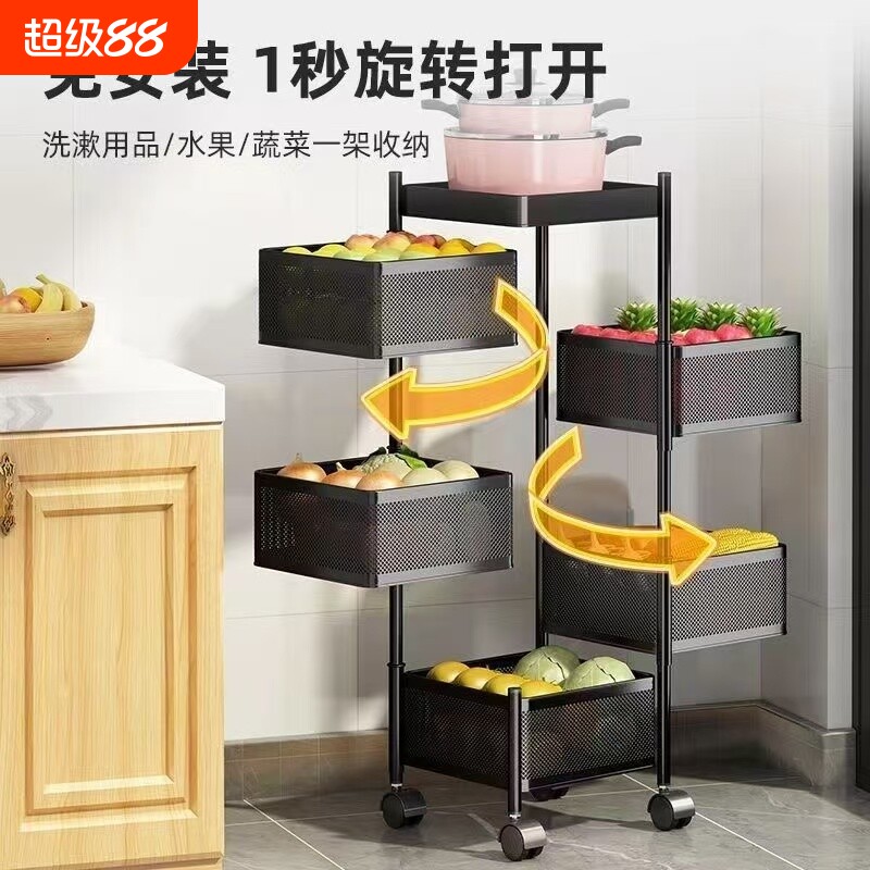 厨房旋转置物架落地多层收纳架子多功能家用菜篮蔬菜水果零食架子