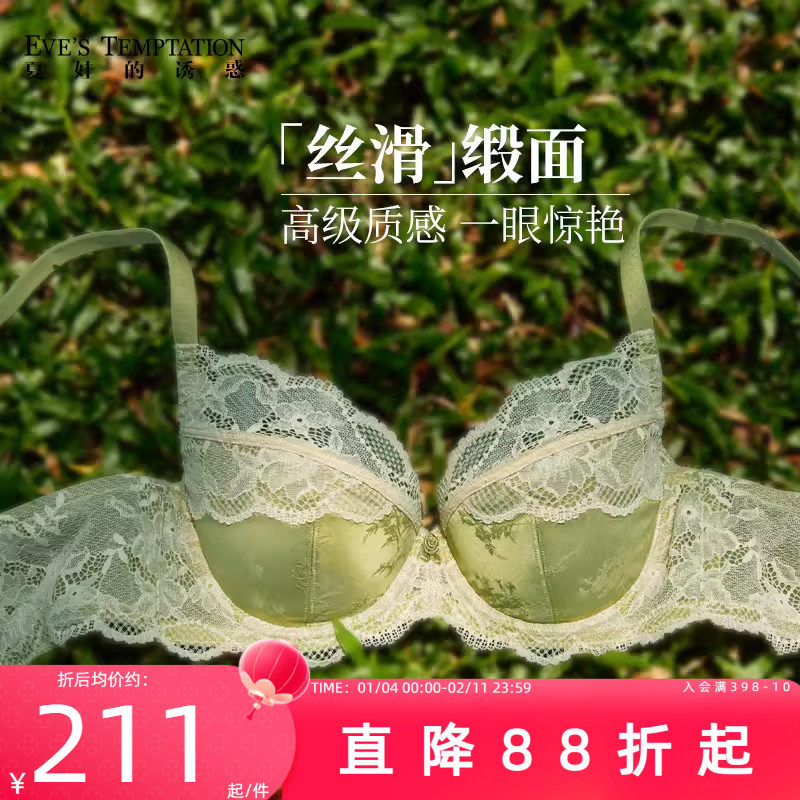 夏娃的诱惑性感凉感缎面蕾丝薄款内衣女士大胸显小2025新款文胸罩