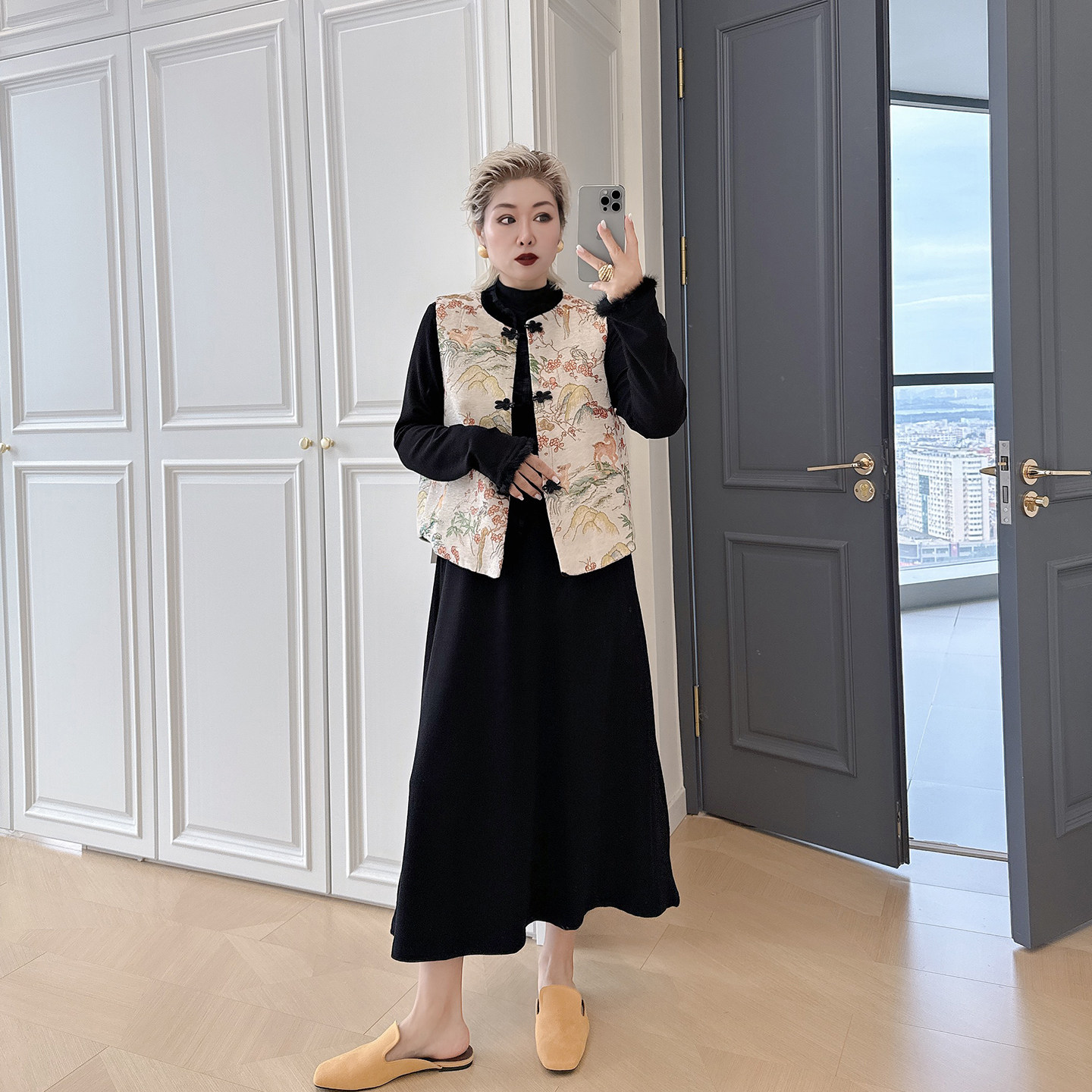 - 复古长袖长裙