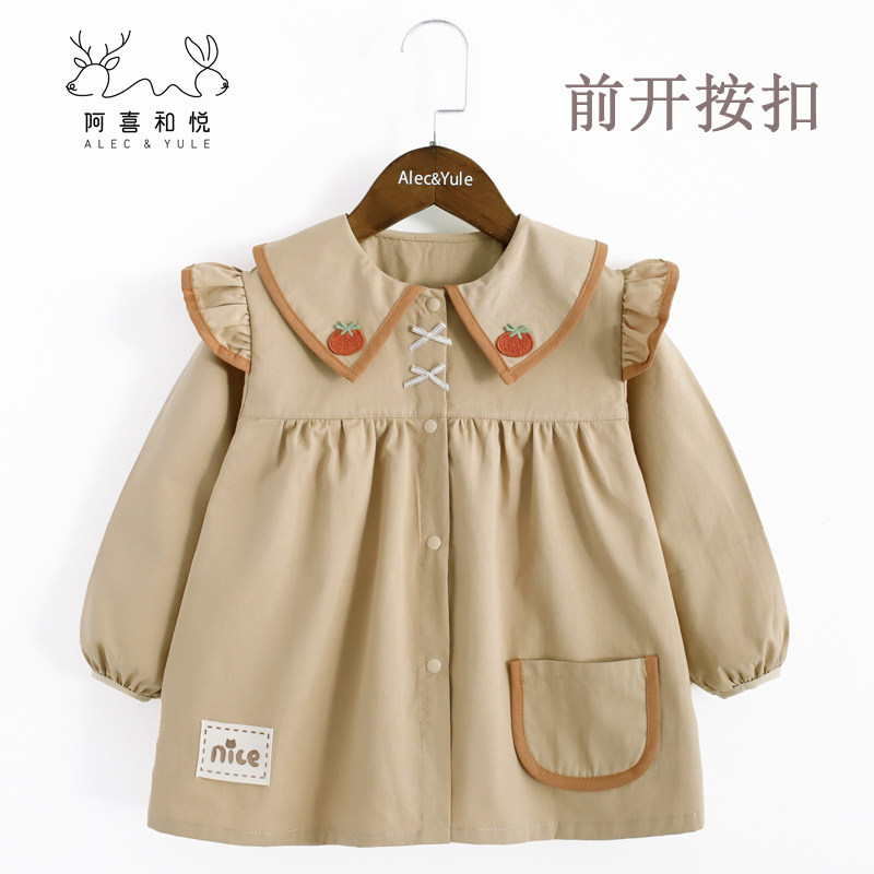 纯棉女宝宝罩衣儿童围裙防水防脏春秋长袖护衣婴儿反穿衣吃饭围兜