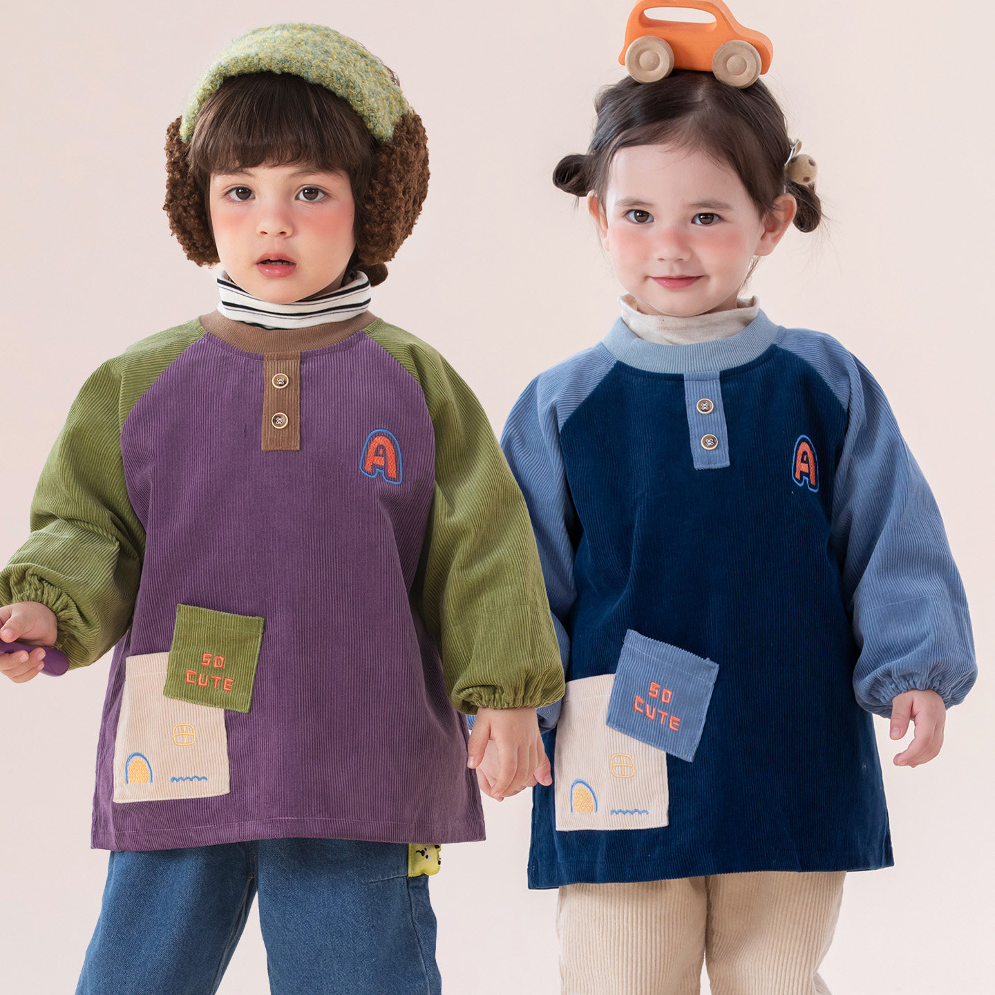 宝宝罩衣秋冬灯芯绒纯棉反穿衣婴幼儿围裙小孩防水防脏幼儿园护衣
