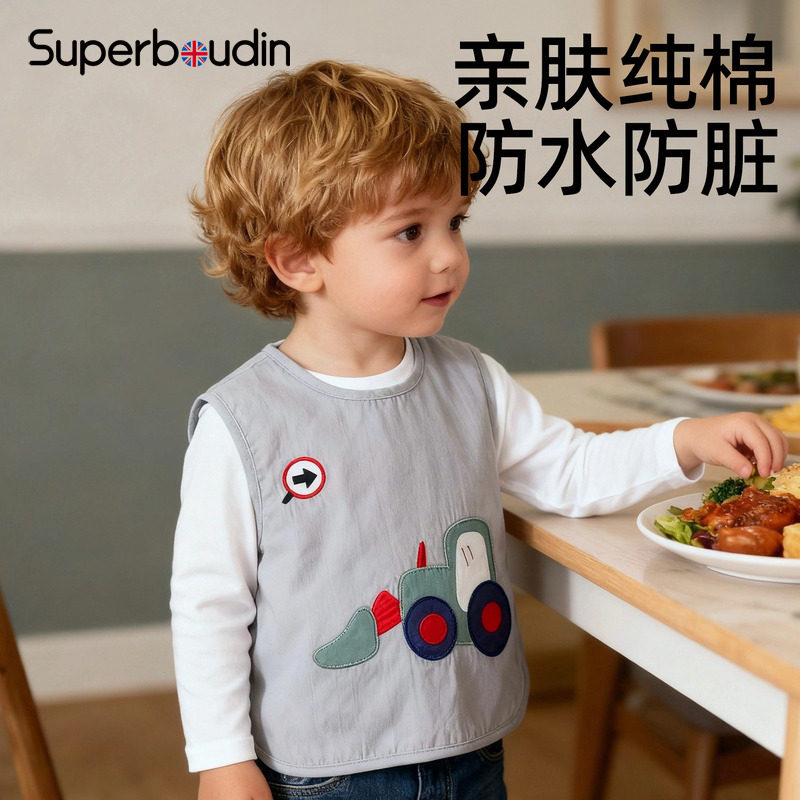 儿童罩衣防水防脏纯棉饭兜男宝宝吃饭围兜婴儿围裙护衣男童反穿衣
