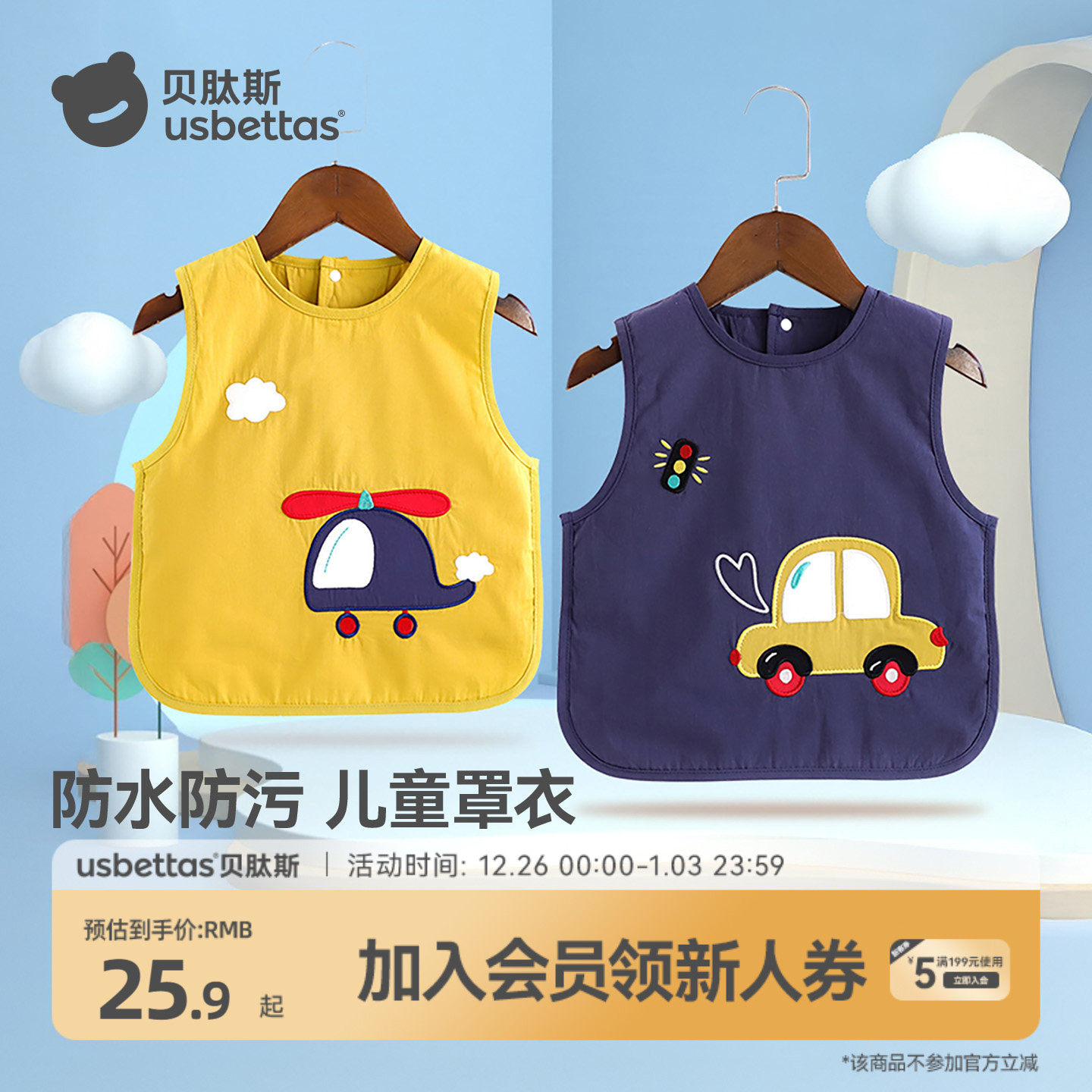 贝肽斯儿童罩衣纯棉男女宝宝饭兜婴儿防污防水吃饭围兜夏季薄款S