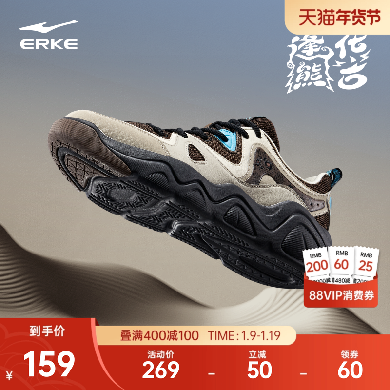 电池熊猫4鸿星尔克板鞋男鞋新款黑白色鞋子冬季运动鞋厚底休闲鞋