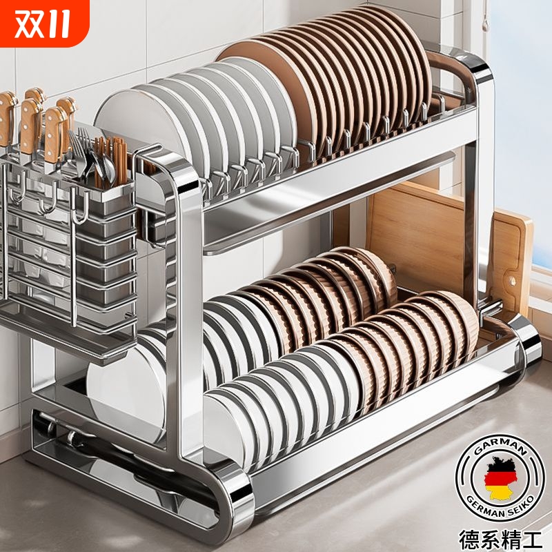 德国不锈钢碗碟收纳架厨房多功能置物架放碗架沥水架碗盘碗筷碗柜