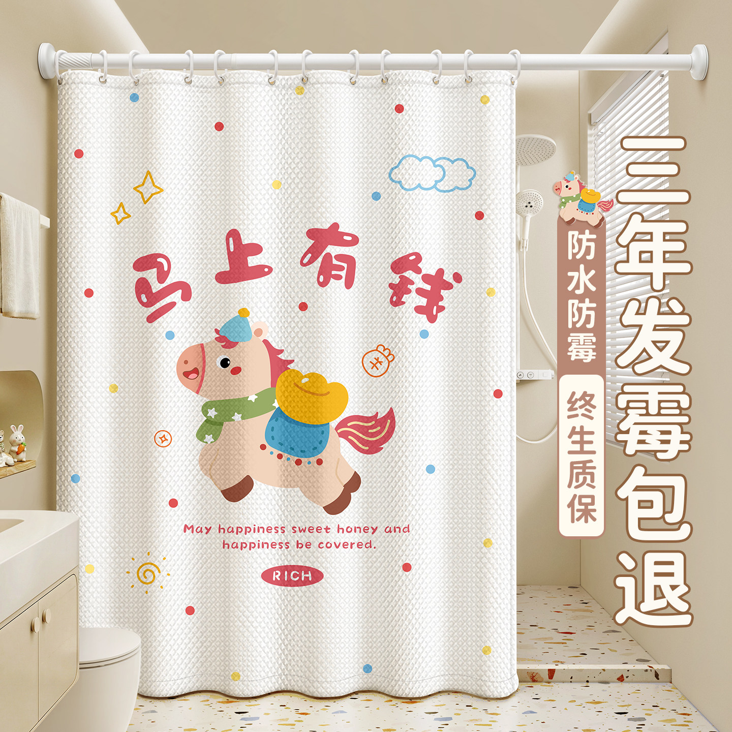 浴室浴帘防水防霉卫生间隔断帘洗澡帘子挂帘窗帘布高档套装免打孔