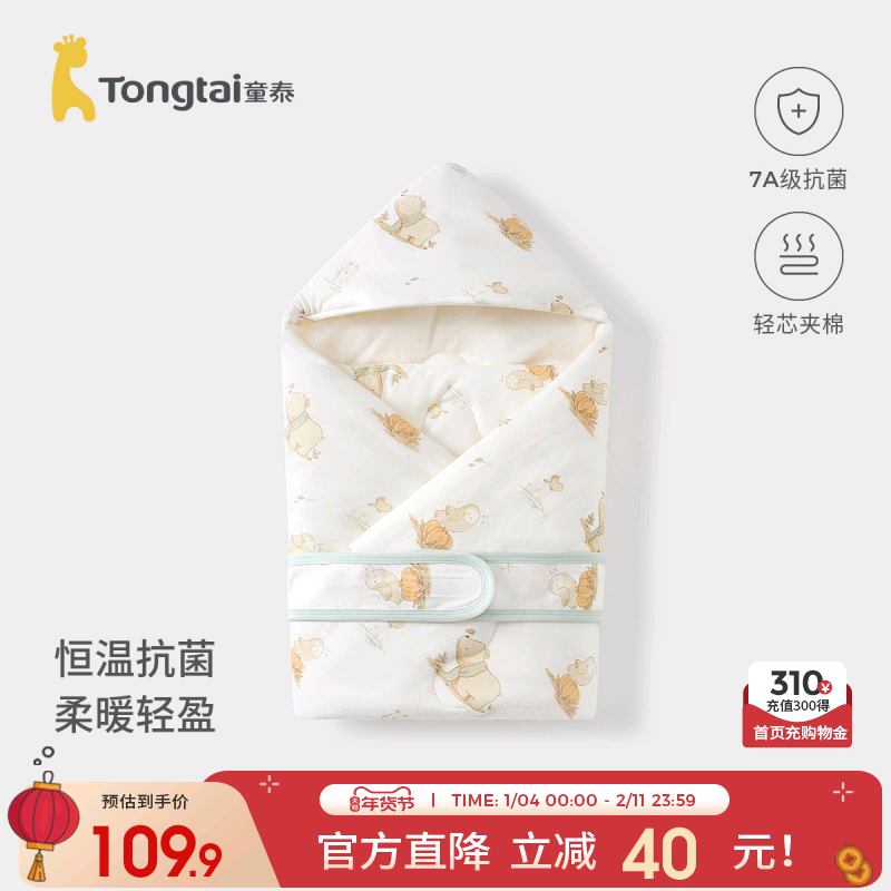 童泰新生儿抱毯可脱胆四季可用纯棉初生宝宝包被产房用品婴儿抱被