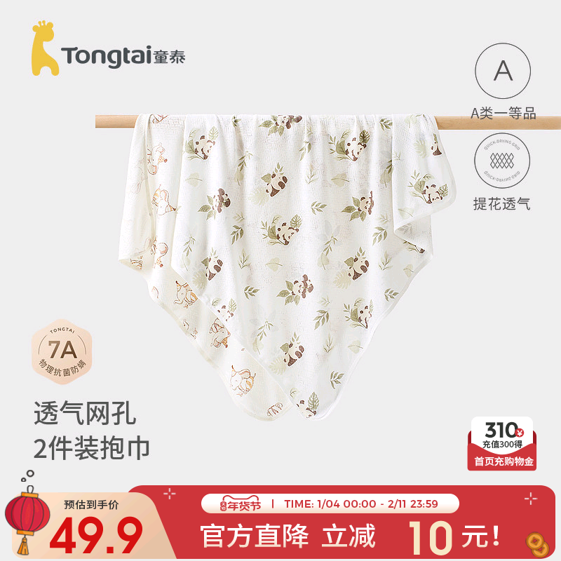 童泰包单婴儿包被新生儿抱被宝宝包裹巾纯棉产房襁褓巾盖毯2件装