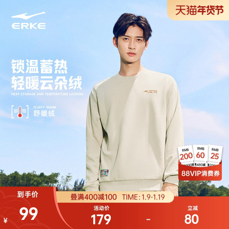 鸿星尔克加绒卫衣男款冬季新款男士男生运动加厚长袖上衣男装衣服