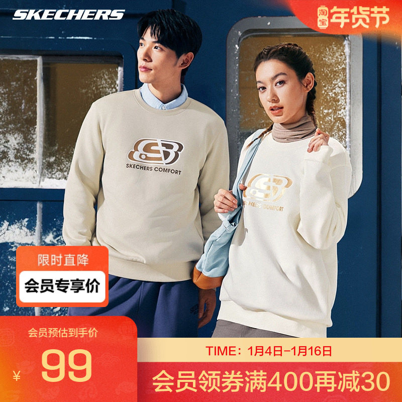 斯凯奇运动长袖男女款情侣款打底衫简约蓄热保暖加厚宽松加绒卫衣