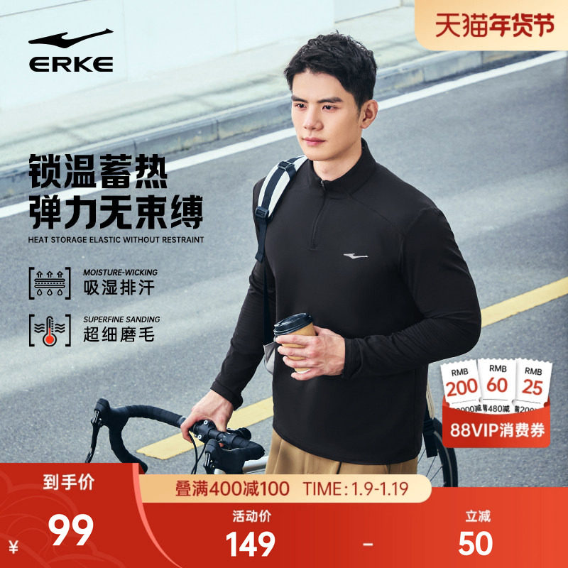 鸿星尔克半拉链长袖t恤男款冬季男士跑步速干衣运动加厚上衣卫衣